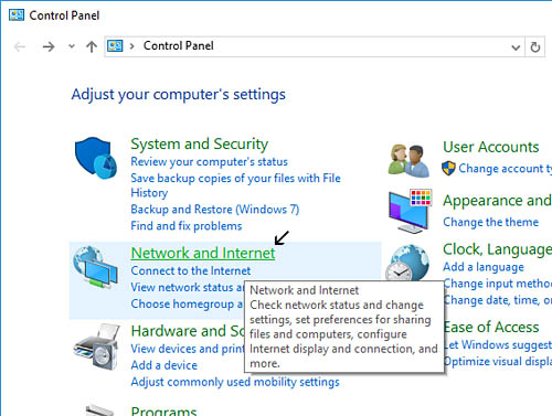 Click on 'Network and Internet' (arrow).
